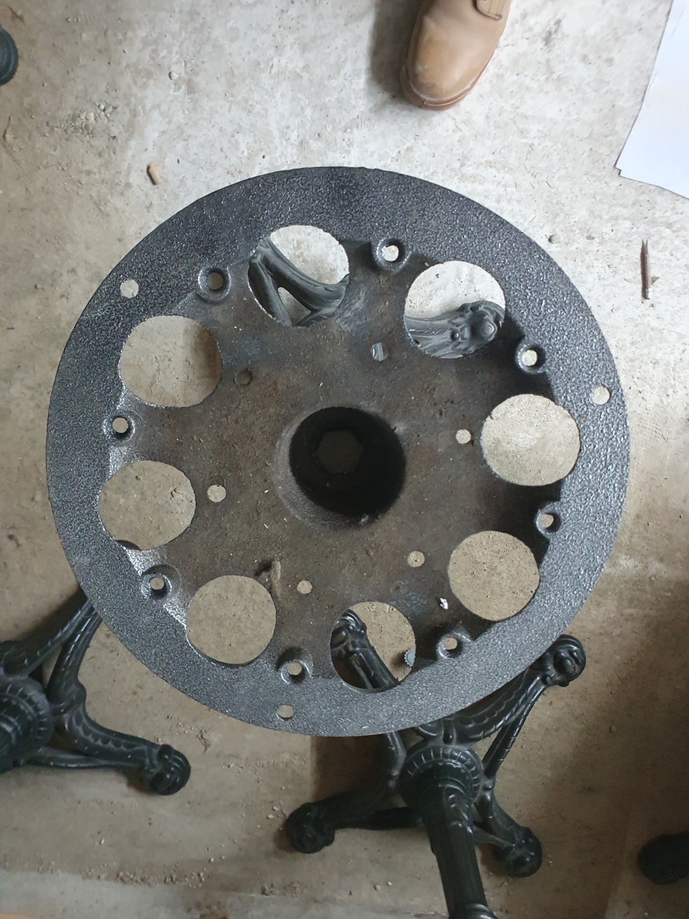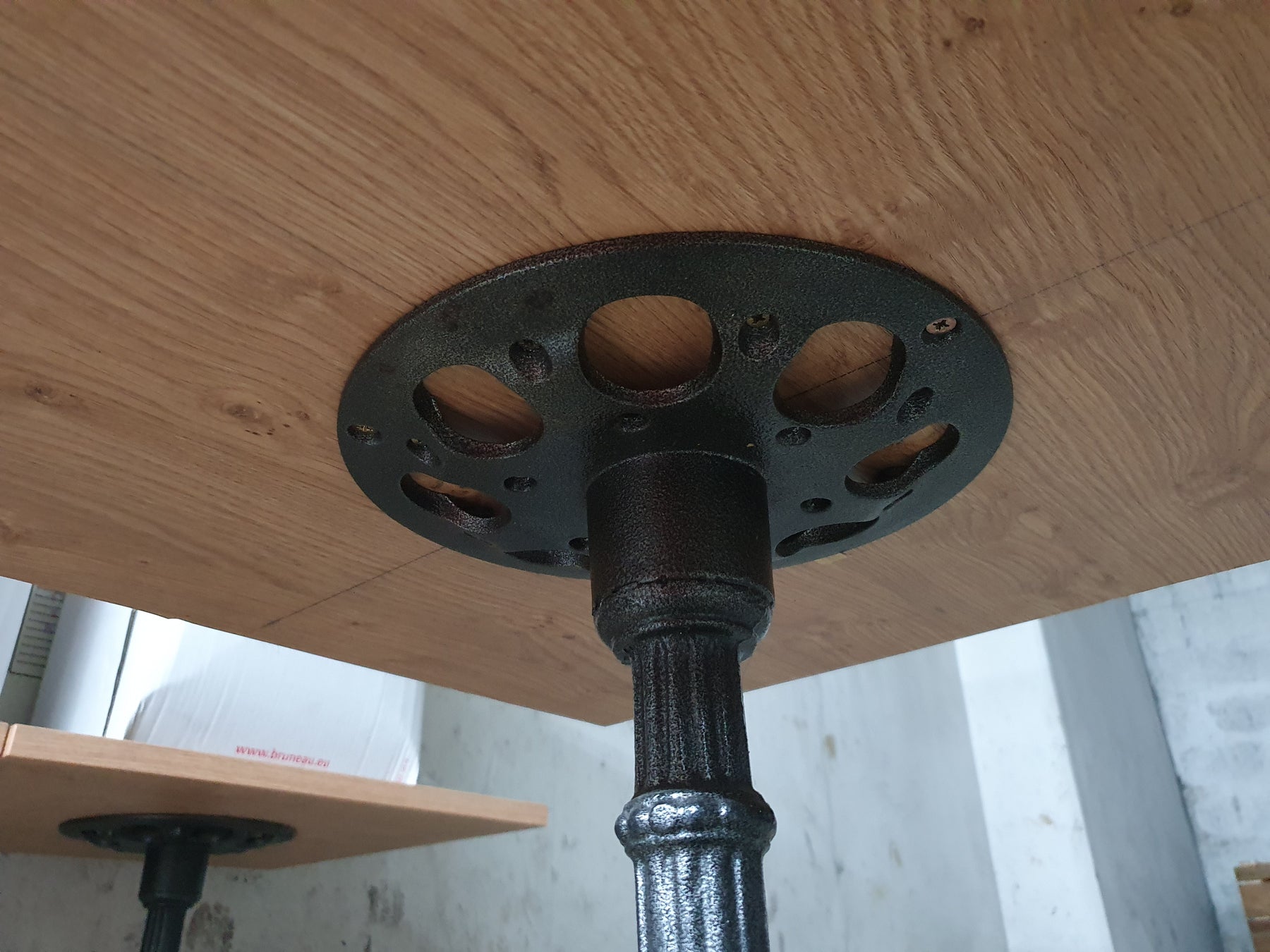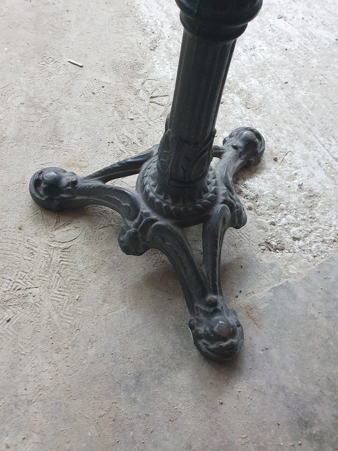 '3 pieds, 4 ont encore la table fixée dessus. '